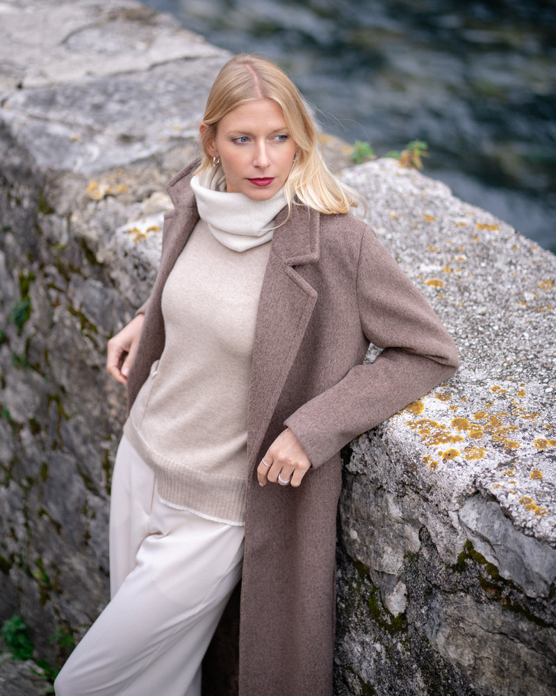 Cappotto doppiopetto in tessuto bouclé con ampio rever