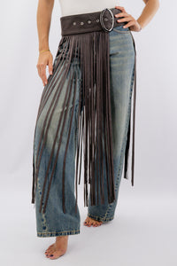 Cintura con frange lunghe e fibbia ovale