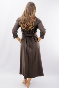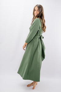 Abito lungo con cintura annodabile e scollo a V abbottonato