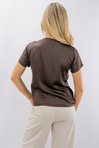 Blusa elegante in viscosa elasticizzata ad effetto satinato. È realizzata con linea dritta e vestibilità asciutta. Ideale come sotto giacca elegante ma confortevole. Disponibile in vari colori. Un must have della stagione autunno-inverno.