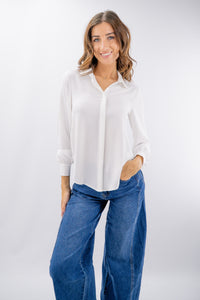 Camicia basic dal design elegante e dalle linee essenziali. La texture effetto raso dona morbidezza e fluidità al tessuto, garantendo comfort e stile in ogni occasione. Perfetta sia abbinata ad un pantalone elegante per momenti formali, sia con un jeans per un look sport chic quotidiano.