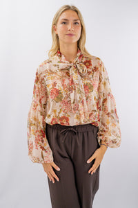 Camicia in raffinato voile realizzata con collo sciallato con sciarpina annodabile. È realizzata con spalla scesa e manica baloon con polsino chiuso da elastico. La linea è dritta con vestibilità regolare. Un capo raffinato e sempre attuale, ideale anche per outfit sportivi.