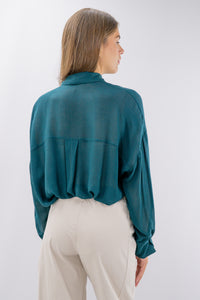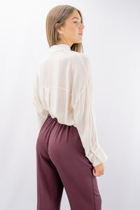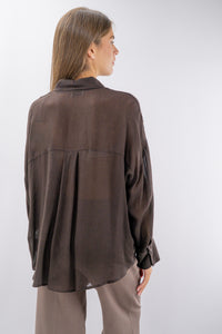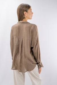 Camicia dalla linea over realizzata con collo sportivo in morbida viscosa e lana. Si propone con spalla scesa, polsi alti chiusi da bottone e fondo stondato. Ampia la vestibilità per outfit di carattere dal gusto rilassato. Disponibile in vari colori.