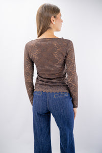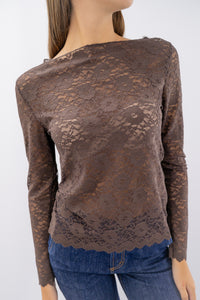 Collo a barchetta in pizzo trasparente realizzato con vestibilità asciutta per outfit dal gusto romantico con brio. Disponibile in vari colori .