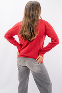 Coreana in texture morbida con viscosa e cashmere realizzata con strass luminosi nella parte frontale. È realizzata con polsini con spacco e fondo dritto. Disponibile in varie taglie e colori.