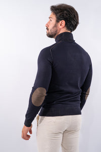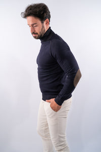 Dolcevita realizzato in misto viscosa. Un capo essenziale che unisce comfort e dettagli raffinati grazie alle eleganti toppe applicate sulle maniche. La lavorazione a costine su collo, polsini e fondo arricchiscono il design con un tocco moderno. Perfetto sia per look casual sia come sottogiacca. Vestibilità regular per uno stile versatile e contemporaneo.