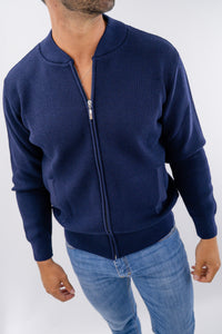 Giacca lavorata a nido d'ape con zip realizzata in misto lana. Un capo raffinato e confortevole grazie alla comoda chiusura a zip e alle tasche a filo frontali. Presenta polsini e fondo a costine. Perfetta per creare sovrapposizioni stilose e alla moda. Vestibilità regular con varietà di colori e taglie. Disponibile anche la versione girocollo e polo.