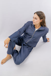 Giacca punto milano diagonale realizzata con collo cratere e chiusura a zip lunga. La linea è leggermente ad ovetto con pinces sul fondo pizzicate a creare movimento. La spalla è scesa. Si completa di originali tasche a scomparsa frontali. Buona la vestibilità con sviluppo taglie.