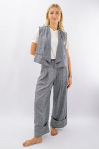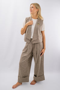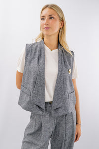 Gilet tweed aperto con revers