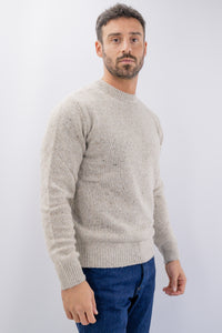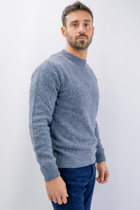 Girocollo in mélange realizzato con filati di colori diversi. Si presenta con collo a giro, polsi e abbassamento a costine. Si presenta in misto lana calda e soffice.