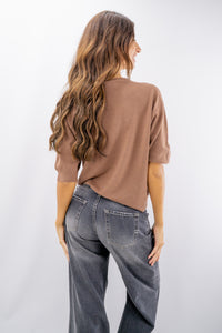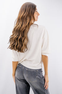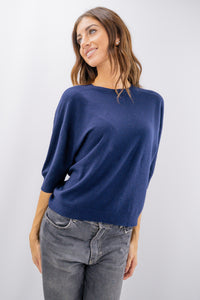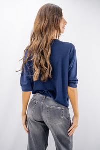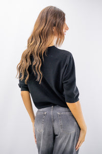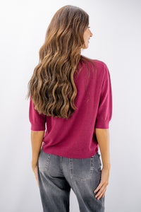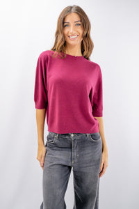 Linee pulite e comfort quotidiano si incontrano in questa maglia a mezza manica con collo a giro. È realizzata a capo completo in texture morbida con viscosa e manica a martello. La vestibilità è morbida con ampia scelta di colori. Rende il top sia in solitaria che in completamento al cardigan con gli stessi colori.