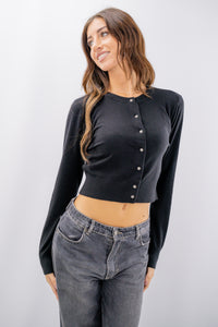 Golfino cropped con bottoni gioiello