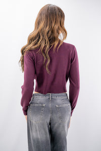 Golfino alla coreana dalla linea cropped realizzato in texture morbida con lana e viscosa. È proposto con elegante abbottonatura gioiello, polsi ed abbassamento a costine sottili alte. Un capo raffinato dal gusto bon ton.