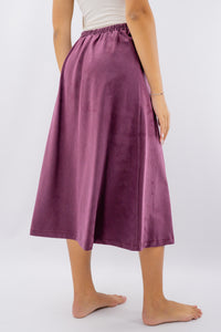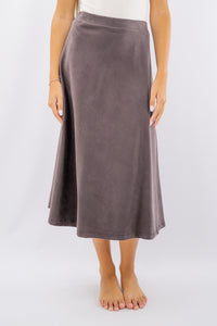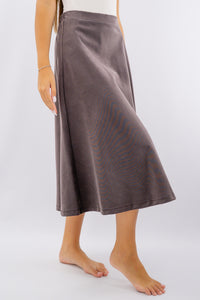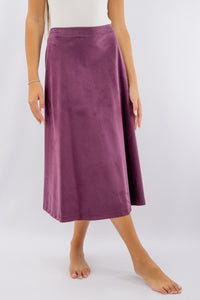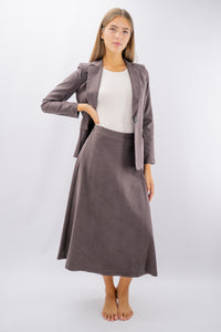 Gonna lunga con linea svasata realizzata in tessuto mano pesca soft. Si propone con cinturino elasticizzato e vestibilità regolare con ampia scelta di taglie e colori. Si completa con il blazer corrispondente per outfit grintosi e di carattere.
