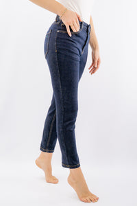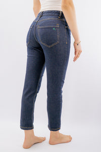 Jeans modello cinque tasche in denim lavaggio scuro realizzato con ricamo x sulla tasca posteriore. Grazie alla texture elasticizzata dona una buona vestibilità per outfit quotidiani dinamici. Disponibile in varie taglie.