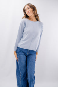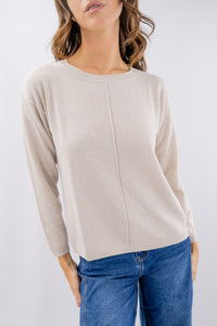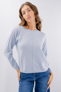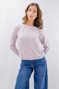 Girocollo in morbida texture con lana, viscosa e cashmere realizzata con costa centrale decorativa sulla parte frontale. La linea è dritta con vestibilità regolare e spalla scesa. Un tocco glam è dato dalla presenza di lurex. Disponibile in varie taglie e colori.