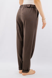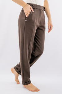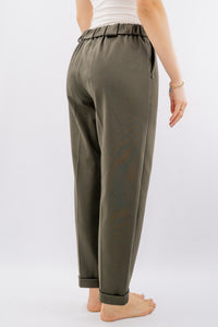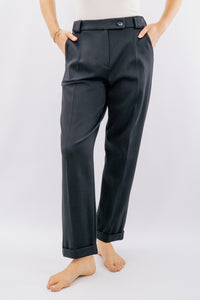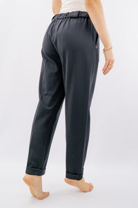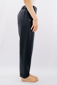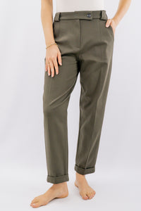 Linee sartoriali e comfort quotidiano si incontrano in questo pantalone dal taglio morbido con gamba dritta con risvoltino sul fondo. È proposto con cinturino elasticizzato posteriormente e chiusura frontale a zip e bottone. Le tasche sono alla francese. Buona la vestibilità con varietà di taglie e colori.