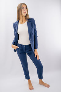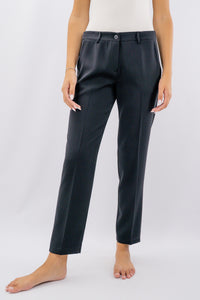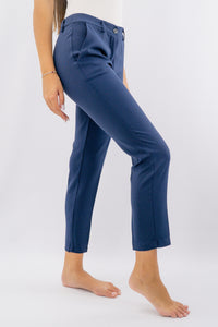 Pantalone con gamba asciutta in tessuto fluido realizzato con chiusura frontale a zip e bottoni, cinturino con passanti e tasche alla francese. Un capo intramontabile sempre presente nella collezione autunnale. Si completa con il blazer corrispondente per outfit di carattere con un piglio grintoso. Vestibilità regolare con varietà di taglie e colori.