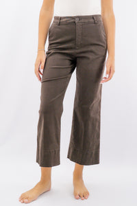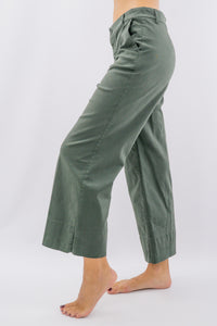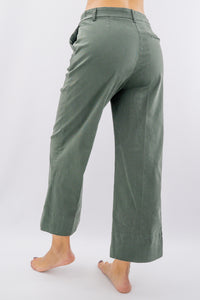 Pantalone cropped a palazzo in cotone elasticizzato consistente. Si presenta con chiusura frontale a zip e bottone, cinturino con passanti e tasche alla francese, con tasca posteriore segnata a filetto. Disponibile in varie taglie con vestibilità regolare.