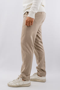 Linee pulite e comfort quotidiano per un pantalone dal taglio rilassato con gamba asciutta, pinces, e chiusura a zip e bottone a scomparsa con coulisse interna regolabile. La texture dalla mano morbida dona una piacevole sensazione al tatto, mentre la costruzione essenziale con chiusura nascosta valorizza un look curato. Un modello versatile, ideale per completare outfit casual raffinati, in abbinamento al blazer corrispondente. Regolare la vestibilità con varietà di taglie.