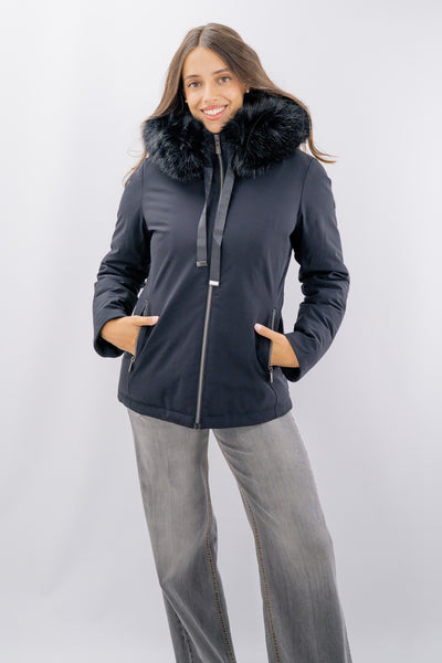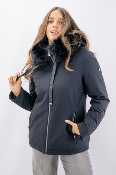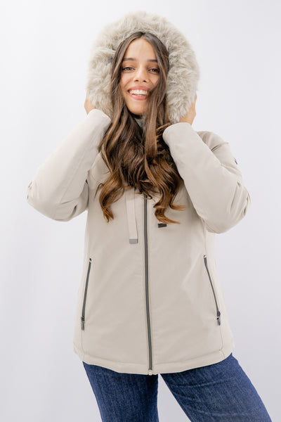 Giaccone imbottito con cappuccio bordato in ecopelliccia removibile