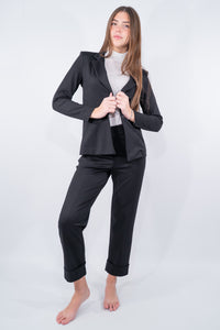 Blazer sfoderato in punto Milano obliquo realizzato con revers e chiusura ad un bottone che sottolinea la silhouette in maniera armoniosa. Si completa con il pantalone corrispondente per un outfit grintoso e confortevole. Disponibile con un 'ampia scelta di taglie e colori.