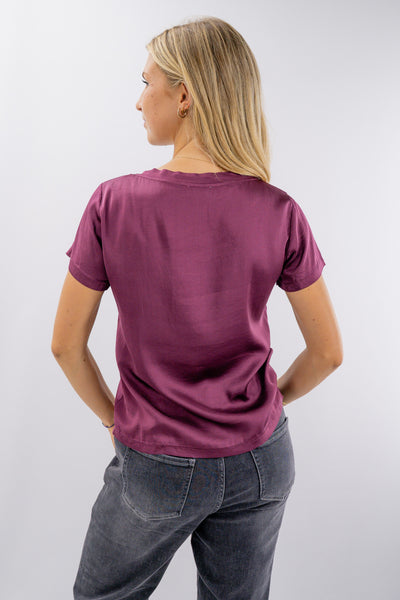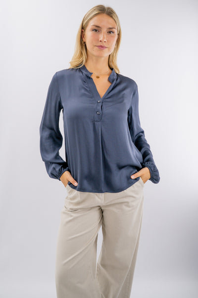 Blusa in viscosa ad effetto satinato con bordi lurex