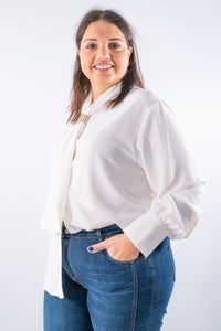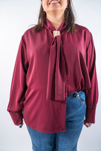 Blusa con cravatta foulard e fermaglio scorrevole