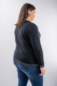 Pullover morbido dalla linea rilassata, pensato per un look essenziale con un tocco di luce. Il girocollo e la tasca applicata sono impreziositi da profili brillanti, mentre la maglia compatta cade in modo pulito sul corpo. Un capo versatile che unisce comfort e stile quotidiano.