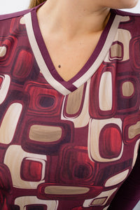 Scollo a V dalla linea oversize realizzato in morbida viscosa elasticizzata con parte frontale in fantasia optical. Un capo dinamico e d'effetto nella sua praticità. Disponibile in varie taglie e colori.