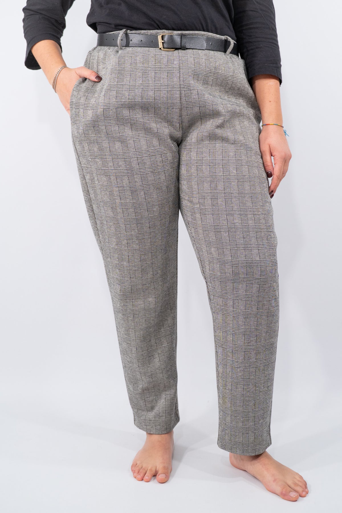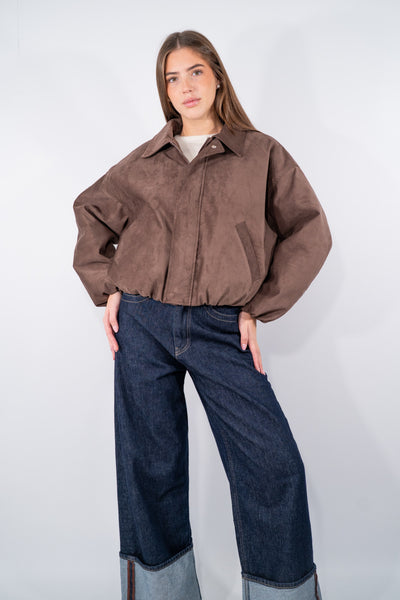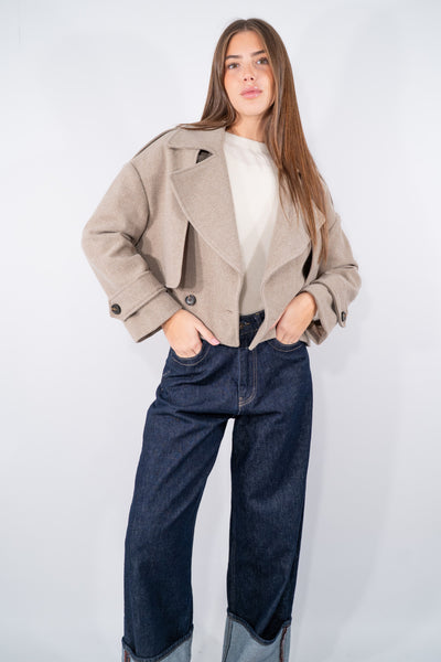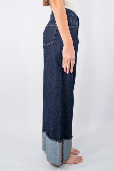 Jeans palazzo con maxi risvolto e cuciture a contrasto