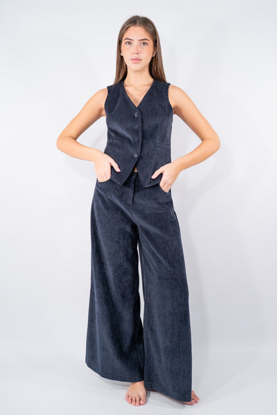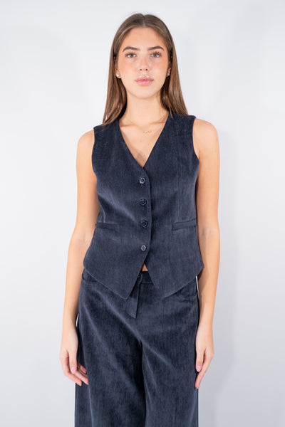 Gilet aperto chiusura a bottoni in tessuto effetto velluto