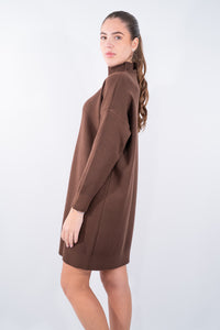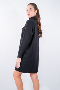Un abito corto che esprime eleganza informale e grande praticità. Il collo lupetto e i polsi a costine definiscono la silhouette essenziale, mentre la tasca laterale applicata regala un tocco moderno e funzionale. Il taglio dritto e regolare assicura comfort durante tutto il giorno, ideale sia per la città che per il tempo libero.