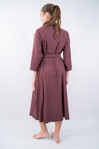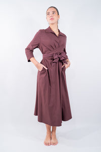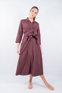 Eleganza discreta e comfort si incontrano in questo abito midi dalla linea morbida, valorizzato da una cintura annodata che sottolinea la silhouette. Il colletto classico a bottoni e le maniche a tre quarti conferiscono un tocco raffinato, mentre la vestibilità fluida lo rende ideale per le occasioni quotidiane o eventi speciali.