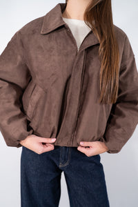 Giubbotto corto effetto scamosciato con zip frontale