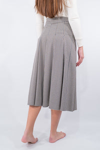 Gonna elegante lunga a pieghe in fantasia pied de poule realizzata con chiusura laterale con zip e baschina fissa a valorizzare il punto vita. Un capo raffinato British style per dare un tocco raffinato agli outfit quotidiani. Disponibile in varie taglie.
