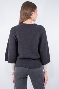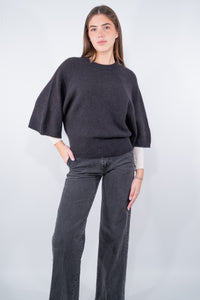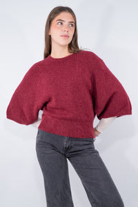 Maglia in morbida e calda texture con alpaca realizzata a girocollo con manica al gomito a kimono e abbassamento alto. Ideale in sovrapposizione a maglie sottili per outfit grintosi e di carattere. Disponibile in vari colori.