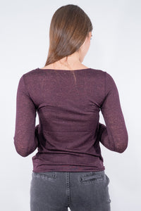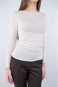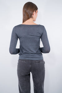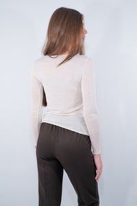 Un capo di ispirazione invernale, caratterizzato da una silhouette morbida e un taglio aderente che si modella con delicatezza sul corpo. La lavorazione a maglia fine conferisce una morbidezza unica, mentre la scollatura a barca e la linea pulita esaltano la semplicità raffinata. La struttura del tessuto, lievemente luccicante, crea un effetto visivo discreto e sofisticato, ideale per un abbinamento elegante e naturale.