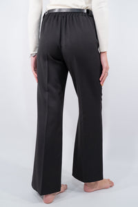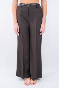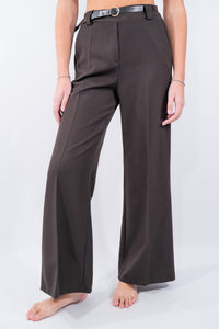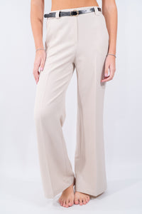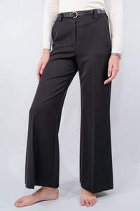 Pantalone dal taglio elegante a palazzo. Il design classico è valorizzato dalla cintura in vita con fibbia metallica che sottolinea la silhouette, il perfetto comfort è dato dall'elastico in vita. Perfetto per look formali o abbinamenti casual-chic.