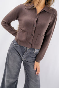 Cardigan cropped realizzato in mobida viscosa. Presenta colletto sportivo, bordi a costine, tasche frontali e chiusura a bottoni per il massimo comfort. Un capo dallo stile casual perfetto abbinato ai pantaloni o gonna del tessuto e colore corrispondente. Vestibilità slim con varietà di colori e taglie.