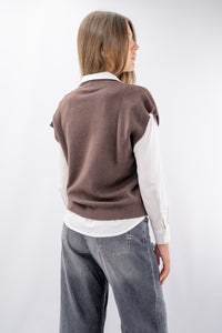 Gilet in maglia con scollatura a V profonda e bordi a costine realizzato in morbida viscosa. Un capo contemporaneo e dalle linee pulite. Ideale abbinarlo al pantalone e gonna del tessuto corrispondente e alla stessa maglieria per creare dei twin set particolari , per look con un tocco ricercato. Vestibilità regolare con varietà di colori e taglie.