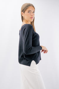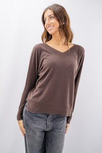 Maglia con scollo a V realizzata in morbida viscosa. Un must have della stagione autunnale che grazie alla scollatura a V su fronte e retro ne valorizza la femminilità. La modellatura leggermente a scatoletta , con polsi e fondi a costine sottili è perfetta per look casual o sporty chic. Ideale abbinato alla gonna e al pantalone con la texture e il colore corrispondente. Vestibilità regular con varietà di colori e taglie.