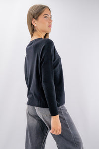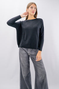 Maglioncino in morbido misto viscosa realizzato con collo a barchetta dalla linea morbida leggermente a scatoletta. Si propone a capo completo con manica raglan, polsi ed abbassamento a costine sottili. Ideale abbinata alla gonna e al pantalone dalla texture e dal colore corrispondente. Regolare la vestibilità con varietà di taglie e colori.