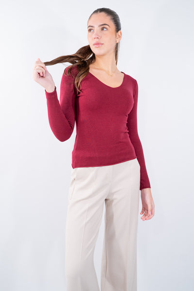 Maglia essenziale in misto lana e cashmere con collo barchetta