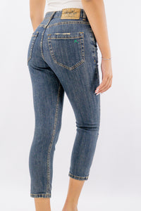 Jeans modello cinque tasche realizzato con caratteristico ricamo x sulle tasche posteriori. È realizzato con gamba leggermente elasticizzata e vestibilità regolare . Originale il lavaggio caffè. Disponibile in varie taglie.