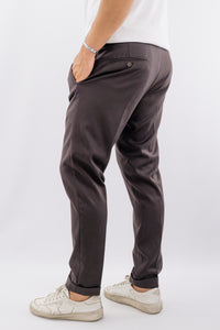 Pantalone elegante realizzato con abbottonatura frontale spostata lateralmente, con pinces e tasche alla francese con impunture a vista. Le tasche posteriori sono chiuse da bottone. La gamba scende con risvolto sul fondo, per un outfit grintoso con un tocco elegante. Si completa con il blazer corrispondente. Regolare la vestibilità con varietà di taglie e colori.