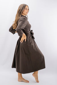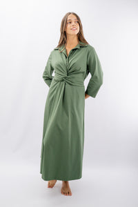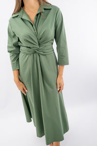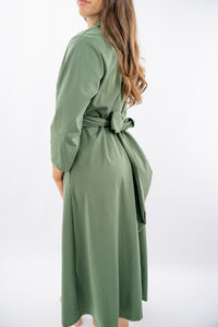 Abito lungo con cintura annodabile e scollo a V abbottonato