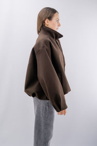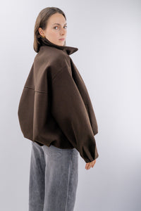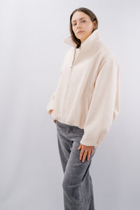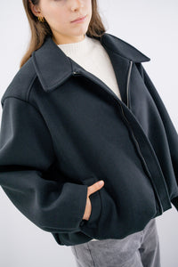 Cappotto bomber foderato realizzato con zip lunga, collo sportivo e tasche a filo. Vestibilità morbida.