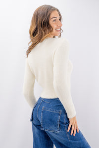 Un capo morbido e vaporoso che avvolge con leggerezza. La texture fluffy ricrea un raffinato effetto pelliccia, mentre la linea corta valorizza la silhouette e aggiunge un tocco moderno alle sovrapposizioni. I bottoni gioiello illuminano il davanti con discreta eleganza.