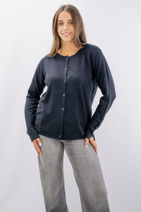 Coreana in texture morbida con viscosa e cashmere realizzata con strass luminosi nella parte frontale. È realizzata con polsini con spacco e fondo dritto. Disponibile in varie taglie e colori.